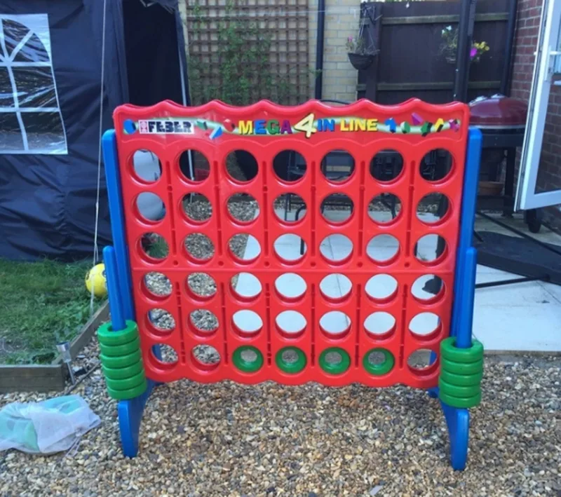This game requires strategy, skill and of course a lot of luck. Players take it in turns to drop counters into the frame to try and form a line of 4 in a row and at the same time block their opponent from doing the same.