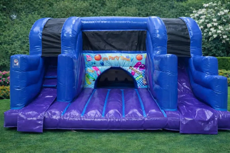 Our Party Time theme junior activity play area, this is prefect for children up to 6 years old , it consists of a bounce area, built in ball pool with air jugglers, and a 5ft platform slide.